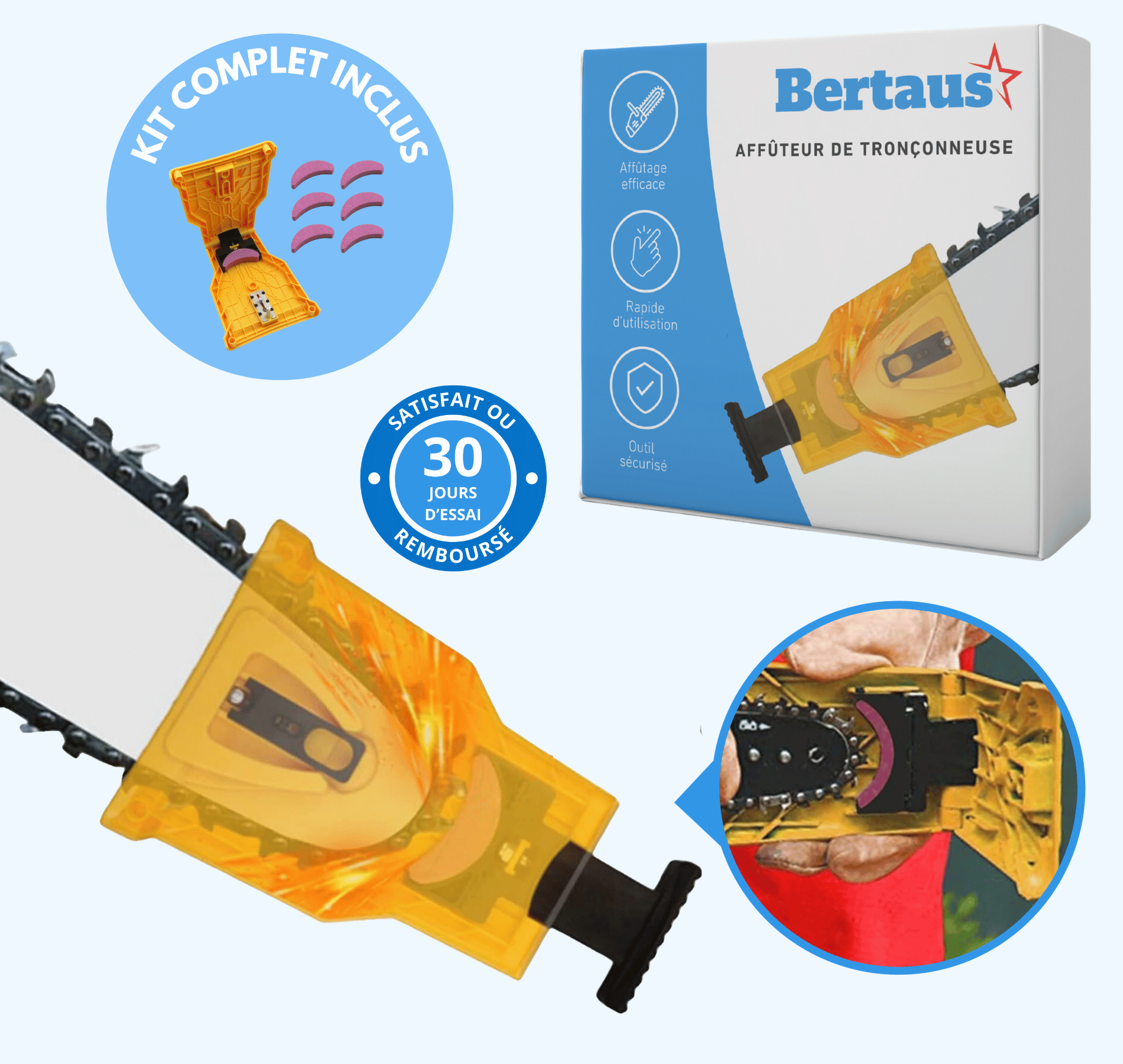 Tout à fait ! Même sans expérience préalable, vous pourrez affûter votre chaîne rapidement et sans effort.