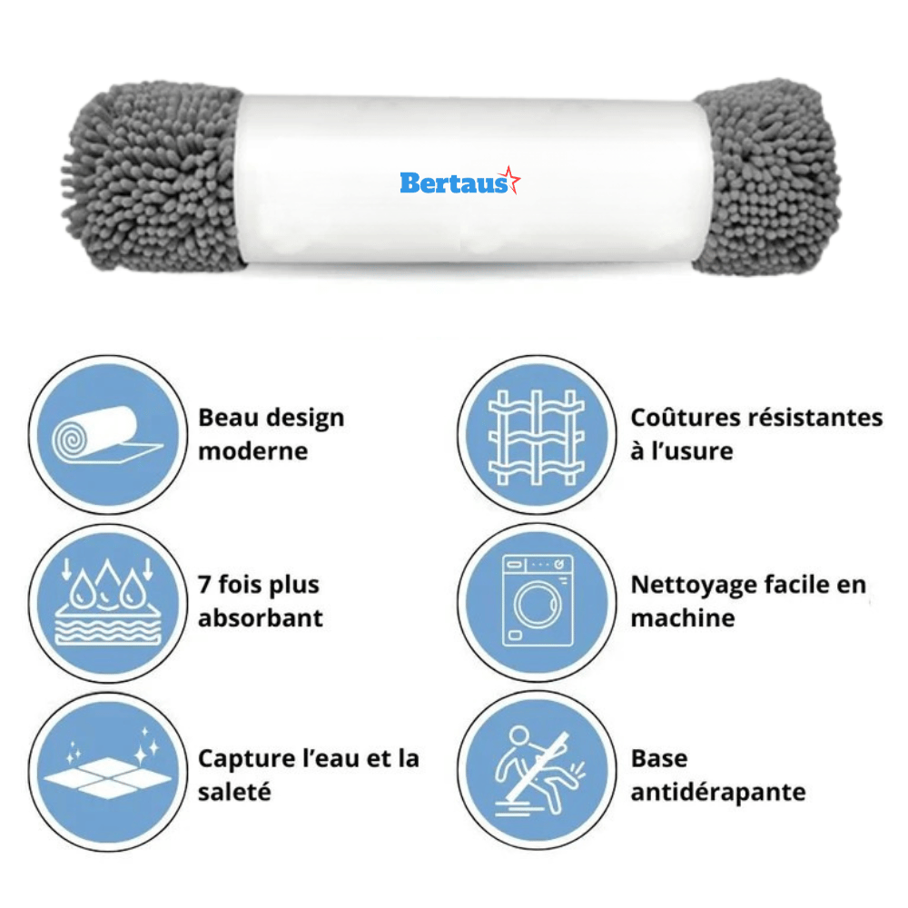 Votre chien rentre de promenade avec les pattes pleines de boue ? Ce tapis révolutionnaire les nettoie en un seul passage. Ultra-absorbant et antidérapant, il garde votre sol sec et impeccable sans le moindre effort.